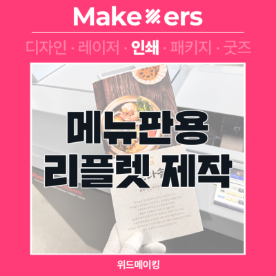 메뉴판용 리플렛 제작 안녕하세요. 부산 남구에 위치한 인쇄 및 굿즈 제작소 위드메이킹입니다…